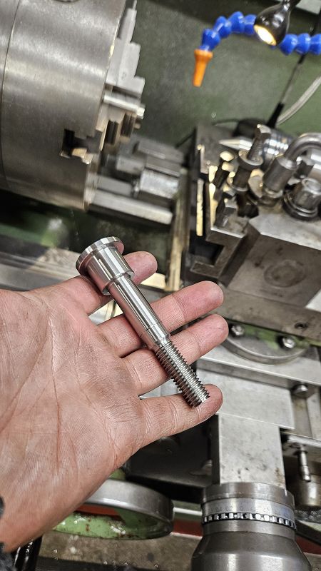 Målt opp og maskinert en ny aksel for ombygging av brems og fothviler til moped